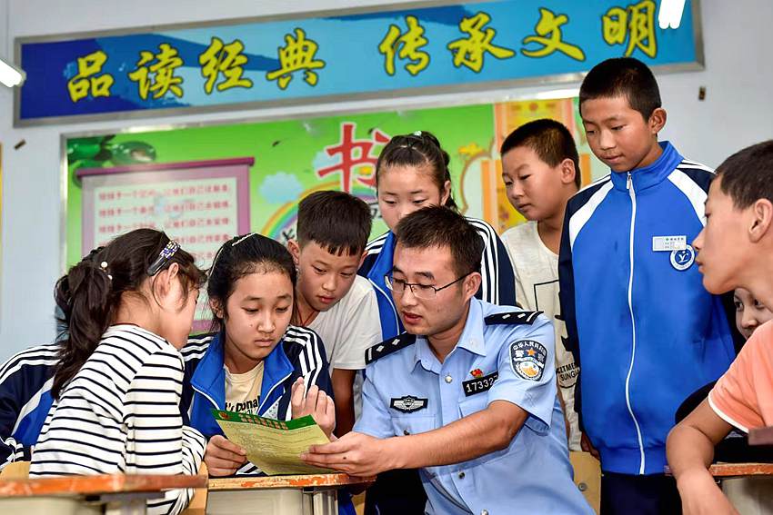 在“九一八事变”88周年纪念日来临之际,吉林通化边境管理支队榆林边境派出所组织民警走进集安市榆林镇中心校,开展“牢记历史勿忘国耻”爱国主义主题教育和法制宣传活动。