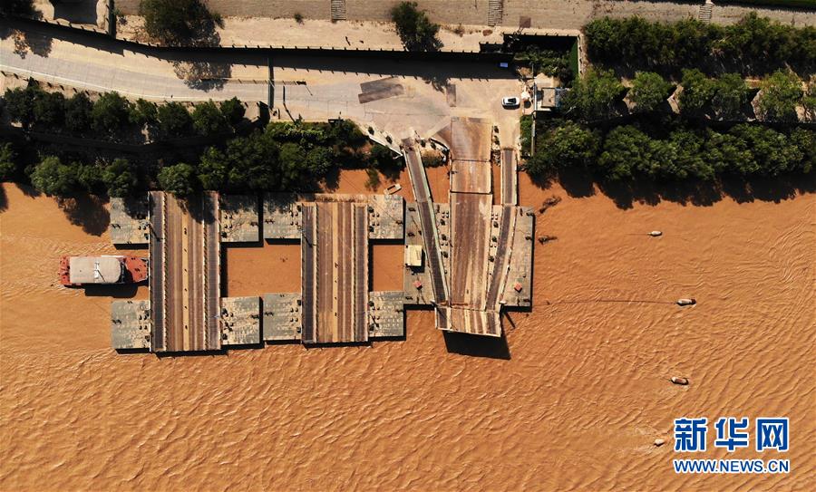 9月18日,济南黄河泺口浮桥已暂时拆除(无人机拍摄)。 受降雨及来水影响,黄河中游干流潼关站17日流量达到5000立方米每秒的警戒流量,形成黄河2019年第3号洪水,洪峰将很快到达济南。对此,山东黄河河务局按要求启动了防汛Ⅳ级应急响应。此外,济南黄河泺口浮桥暂时拆除,待洪峰过后再择机通行。 新华社记者 王凯 摄