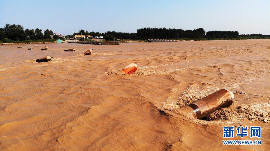 9月18日,暂时拆除的济南黄河泺口浮桥只留下浮筒。 受降雨及来水影响,黄河中游干流潼关站17日流量达到5000立方米每秒的警戒流量,形成黄河2019年第3号洪水,洪峰将很快到达济南。对此,山东黄河河务局按要求启动了防汛Ⅳ级应急响应。此外,济南黄河泺口浮桥暂时拆除,待洪峰过后再择机通行。 新华社记者 王凯 摄