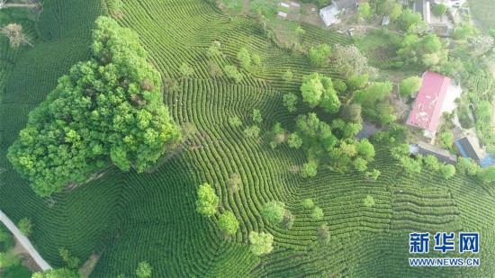这是信阳市浉河区的茶山景色(2018年4月17日无人机拍摄)。 近年来,河南省信阳市立足本地资源,推动“多彩田园”示范工程,建设美丽乡村,发展特色产业,走出了一条绿色发展的道路。 新华社记者 冯大鹏 摄
