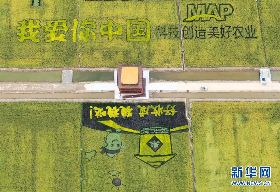 近日,位于天津市西青区王稳庄镇中化现代农业MAP示范农场的大型稻田画进入最佳观赏期。据了解,该处稻田画总面积约23亩,中间设置了高约20米的观景台,以方便游客观赏。 新华社记者 李然 摄
