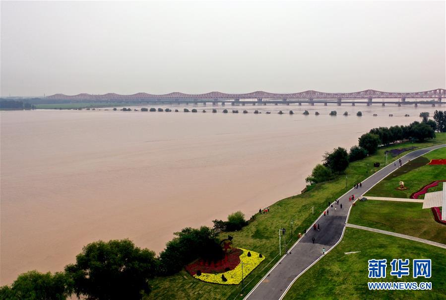 游客在郑州黄河国家地质公园游玩(9月19日无人机拍摄)。新华社记者李嘉南摄