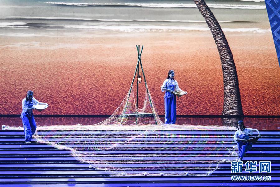 9月19日,演员在第21届南宁国际民歌艺术节晚会上表演歌舞。 当日,第21届南宁国际民歌艺术节晚会在广西南宁上演,呈现南宁元素、民族元素、时代元素,为观众带来一场视听盛宴。 新华社记者 曹祎铭 摄