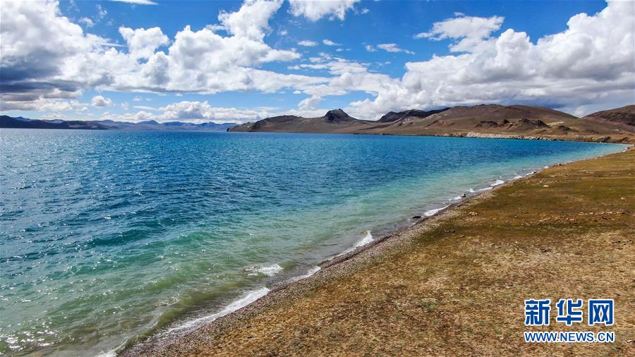 这是普姆雍错湖一景(9月19日无人机拍摄)。 普姆雍错位于西藏山南市浪卡子县境内,海拔五千多米,在周围雪山融水的滋润和阳光的照耀下,美若少女。 新华社记者 晋美多吉 摄