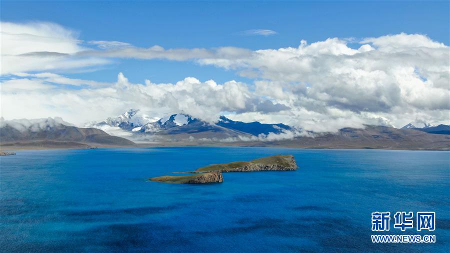 这是普姆雍错湖中的小岛(9月19日无人机拍摄)。 普姆雍错位于西藏山南市浪卡子县境内,海拔五千多米,在周围雪山融水的滋润和阳光的照耀下,美若少女。 新华社记者 晋美多吉 摄