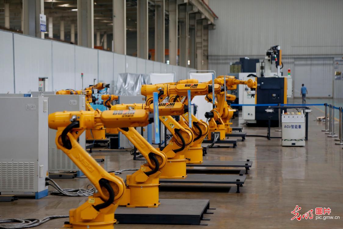 2001年初,随着市场对中高档数控机床需求的全面升温,企业对中高档数控机床的生产研发迫在眉睫,李晓佳主动放弃较为轻松的技术岗位,选择到具有挑战性的数控车间工作。 图为2019年9月3日,宝鸡机床集团数控车间。( 孙云清摄/ 光明图片)