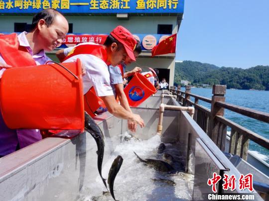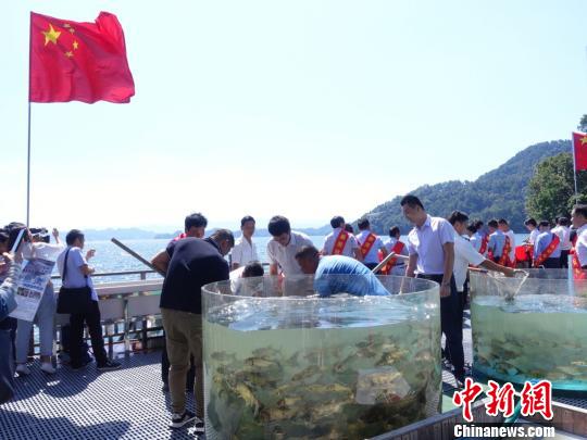 当日共投放鱼苗6万尾。 钱晨菲 摄
