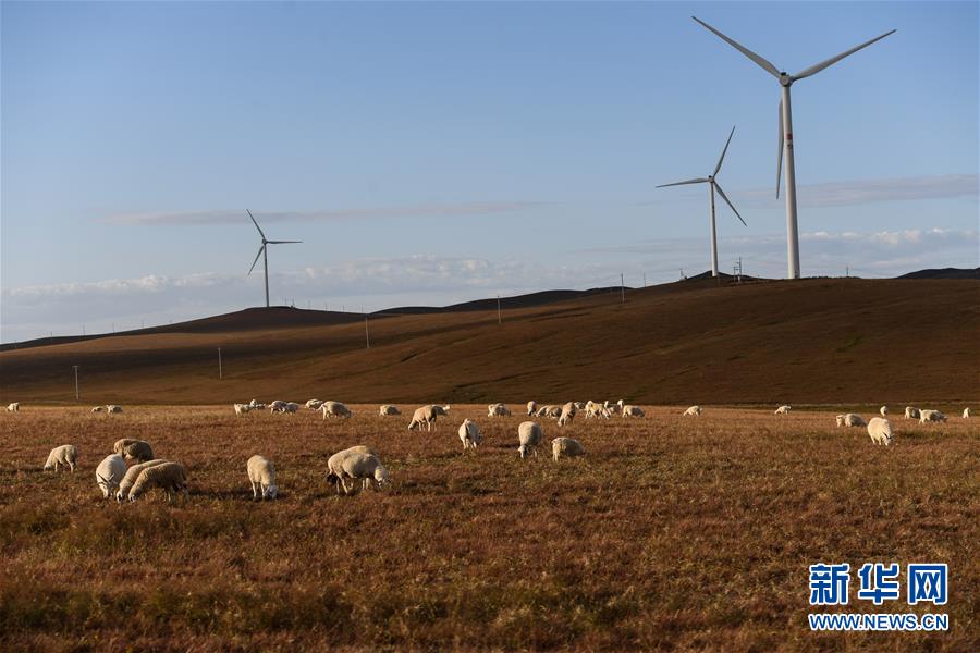 这是在阿鲁科尔沁旗东乌兰哈达嘎查拍摄的羊群(9月20日摄)。 近日,内蒙古自治区阿鲁科尔沁旗的草原一片金黄,景色宜人。 新华社记者刘磊 摄