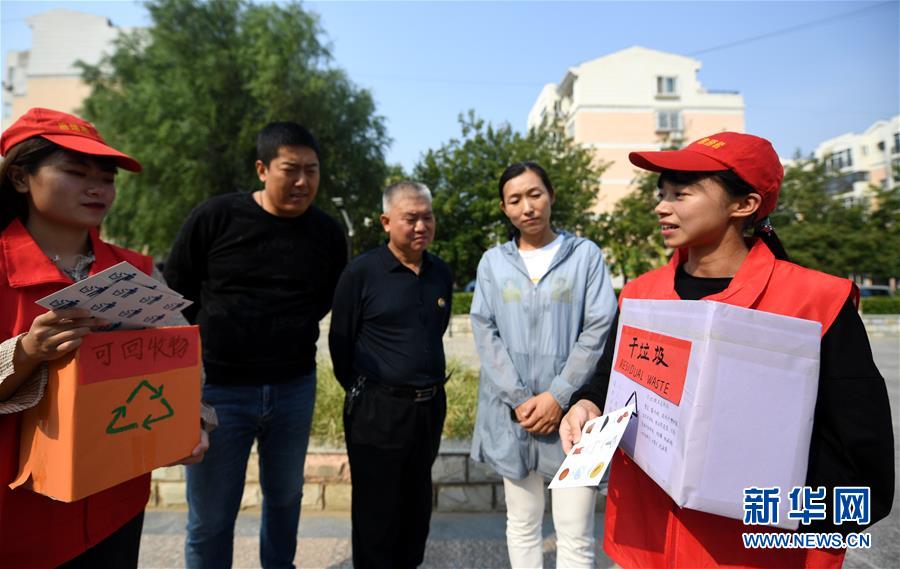 9月21日,在廊坊市安次区文苑小区,志愿者向居民普及生活垃圾分类知识。 当日,河北省廊坊市安次区开展“垃圾分类宣传进社区”活动,社区工作人员和志愿者为辖区居民发放宣传手册,讲解垃圾分类知识。 新华社记者 王晓 摄