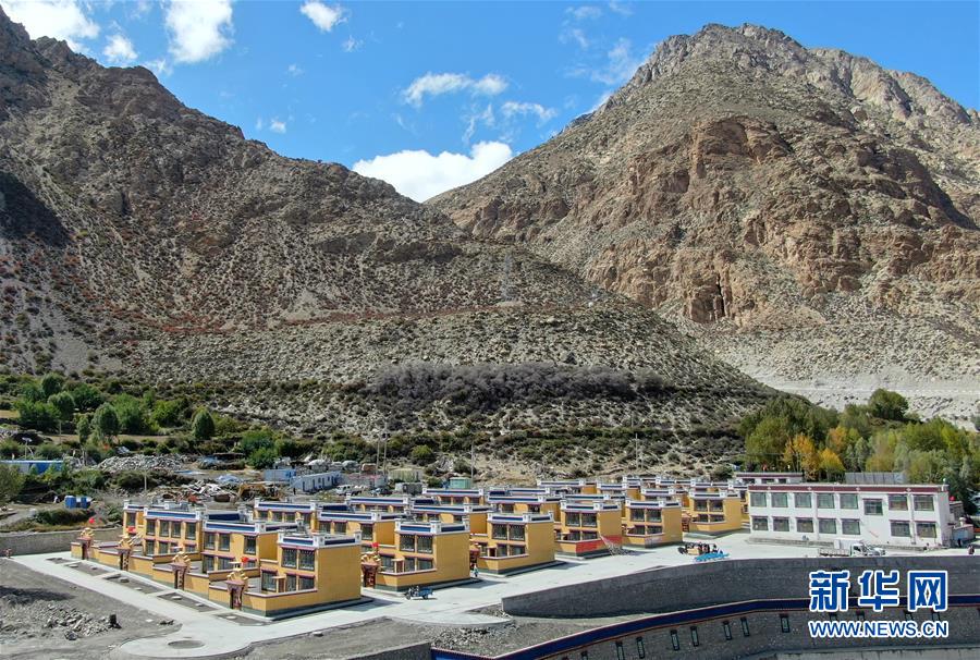 西藏山南市洛扎县洛扎镇新建成的次麦社区边境小康村(9月21日无人机拍摄)。 9月21日,在西藏山南市洛扎县洛扎镇,次麦居委会的28户共88名村民领到次麦社区边境小康村崭新二层藏式新房的钥匙,极大改善了住宿条件。按照人均40平方米标准建设的次麦社区边境小康村,建设面积约为3824.08平方米,工程造价1546.15万余元。除了人均2.4万元的自筹资金外,新房其他费用都由政府扶持。 新华社记者 晋美多吉 摄