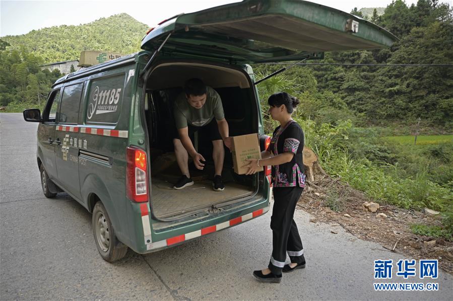 这是乡村互联网达人“乡野丫头”石秋实(右)将采摘的小黄姜搬上邮车(8月28日摄)。石秋实在湖南省怀化市通道侗族自治县一所乡村小学工作,两年前她取名“乡野丫头”录制侗族琵琶歌视频在网上一播而红,从此,她开始利用业余时间录视频、做直播在网上推介家乡。今年丰收节前,拥有220多万粉丝的“乡野丫头”石秋实帮乡亲们在网上卖出2000多件小黄姜。 新华社记者李尕摄