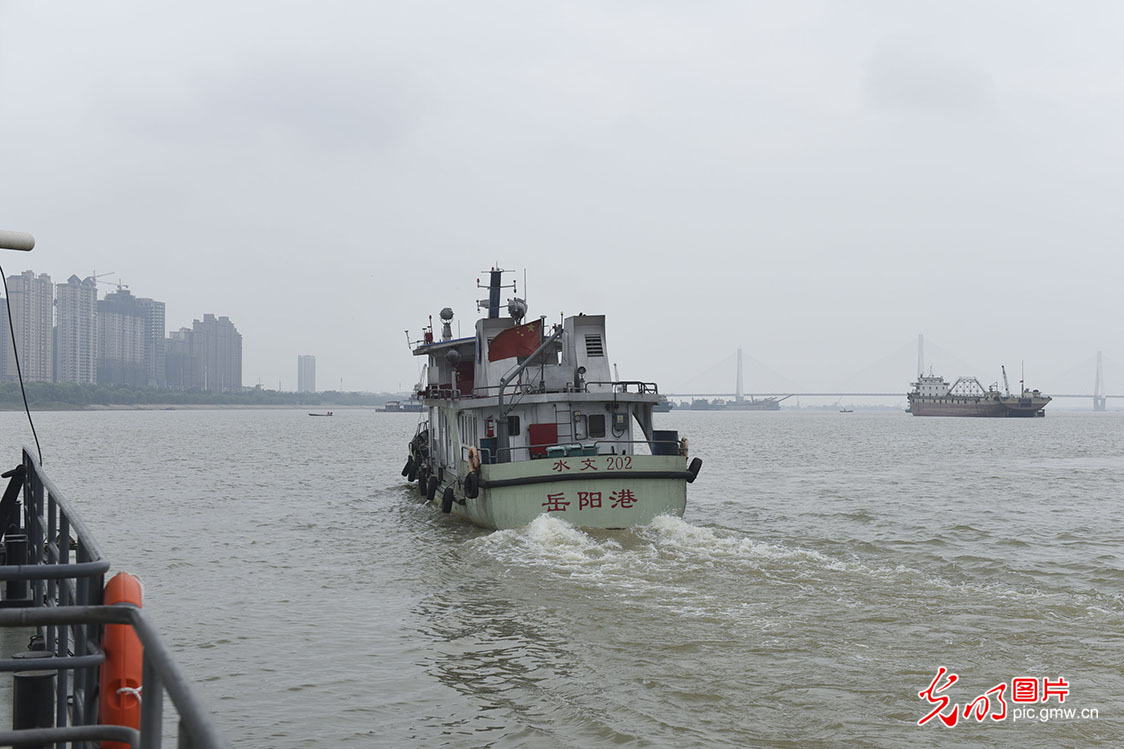 2009年以前,螺山水文站还是实行每年测流100次以上的连时序测站,由8人全年驻守,每次测流都需4个小时左右。为了精简测次,罗兴和同事们一起开展单值化分析试算,使螺山水文站在2009年成为长江上第一个实现流量单值化站,实现汛期驻守,枯季巡测,每年流量测次减少到30余次。这项技术获得了“长江水文技术创新一等奖”。图为2019年8月28日,水文测船离港进行检测任务。(光明网记者 张悦鑫摄/光明图片)