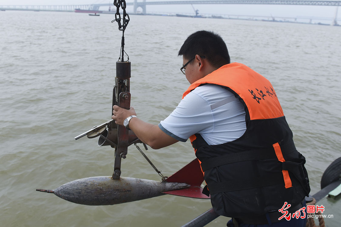 “走,我们试仪器去。”“啃”完上万字的英文指南后,罗兴兴冲冲带着同事一起上船比测。然而,测试结果并不理想。回到单位,罗兴又拿起仪器和说明书反复比对,并带着仪器再次进行比测。不料,结果仍是失败。图为2019年8月28日,罗兴正在水文测船上进行悬移质取样。(光明网记者 邵绪楠摄/光明图片)