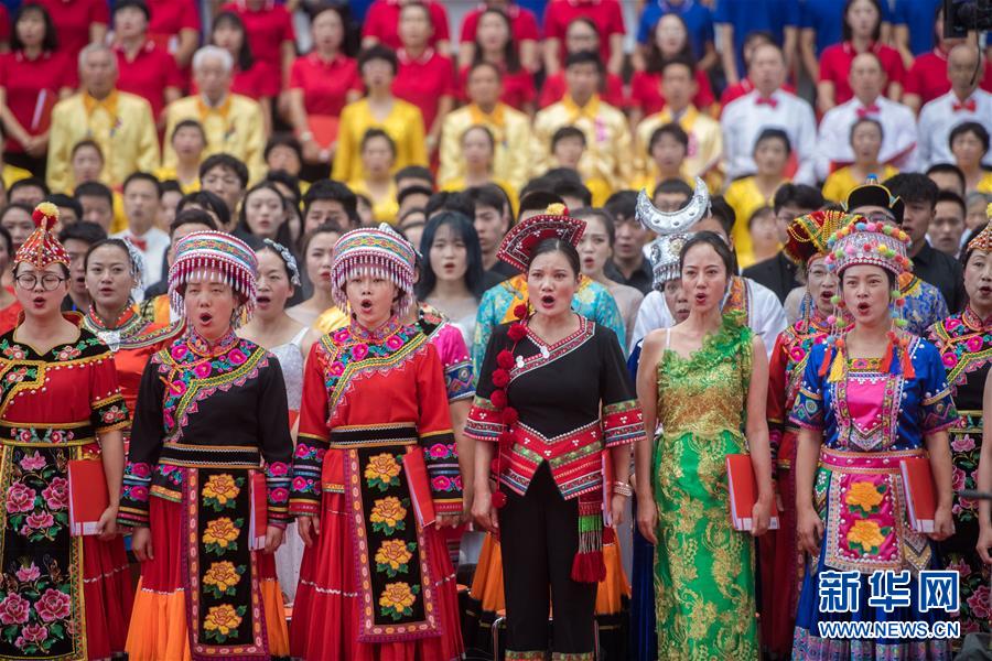 这是9月22日拍摄的合唱展演现场。 当日,“云岭飞歌颂中华”大型合唱展演在昆明开幕,3500名社会各界群众组成的合唱队用歌声为祖国献上祝福。 新华社记者胡超 摄