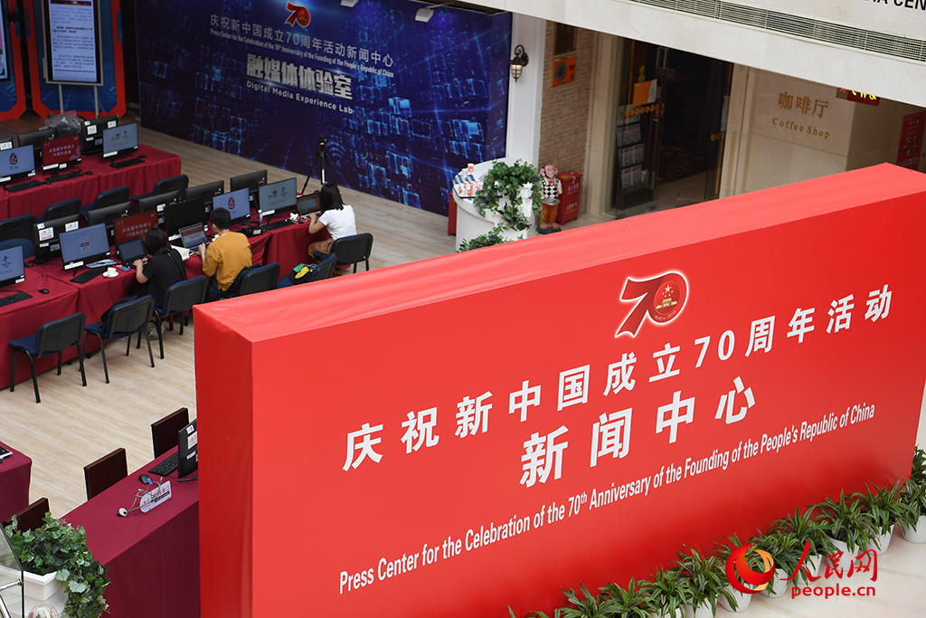 庆祝新中国成立70周年活动新闻中心正式开始对外接待服务。人民网记者 翁奇羽/摄