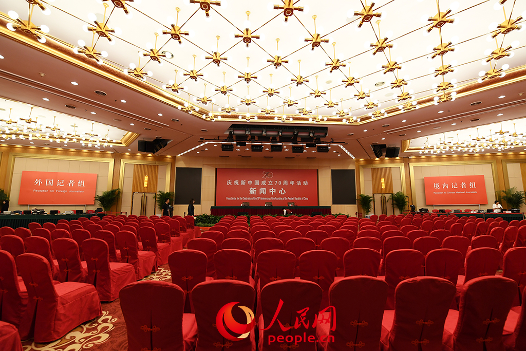 庆祝新中国成立70周年活动新闻中心正式开始对外接待服务。人民网记者 翁奇羽/摄