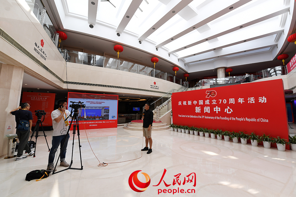 庆祝新中国成立70周年活动新闻中心正式开始对外接待服务。人民网记者 翁奇羽/摄
