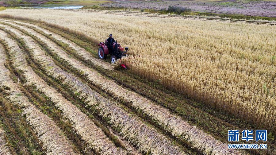 9月21日,山西省宁武县马营海村农民在收割莜麦。 金秋时节,各地一派丰收景象,农民们满怀收获的喜悦,迎接“中国农民丰收节”的到来。 新华社发(曹建国 摄)