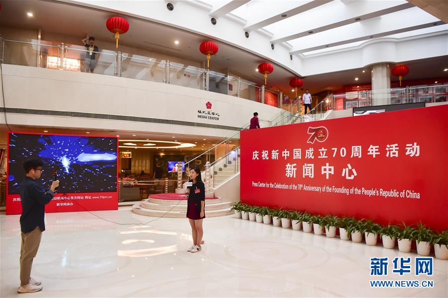 9月23日,媒体记者在位于北京梅地亚中心的庆祝新中国成立70周年活动新闻中心采访报道。 当日,设在北京梅地亚中心的庆祝新中国成立70周年活动新闻中心正式开始对外接待服务。新闻中心设置新闻发布厅、新闻图片室、记者工作区、医疗服务室等功能区。新闻中心将组织新闻发布会、专题集体采访和外出参观采访活动,提供资料信息服务和传输通讯服务等。 新华社记者 王全超 摄
