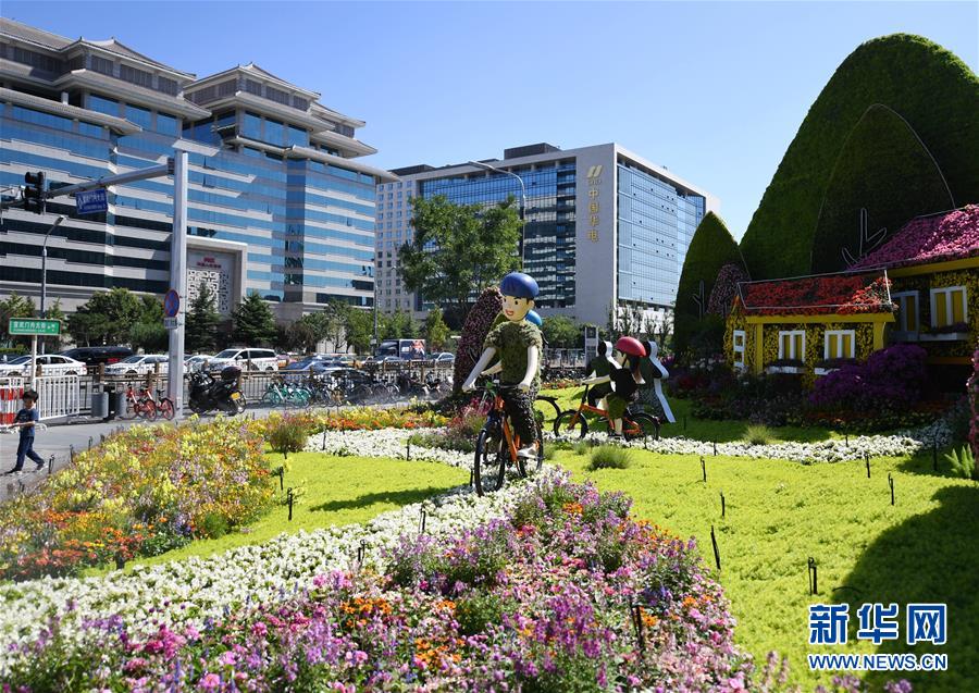 9月23日拍摄的位于西单西南角的“美好生活”花坛。新华社记者 张晨霖 摄