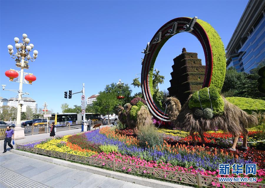 9月23日拍摄的位于西单东南角的“文明之路”花坛。新华社记者 张晨霖 摄