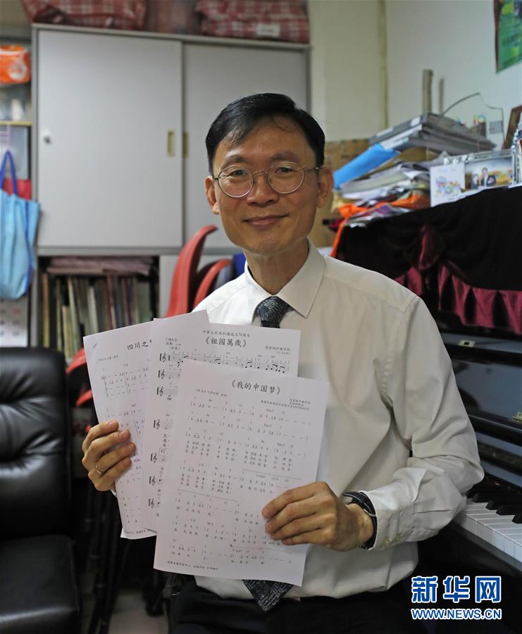 9月24日,张家诚展示由自己作词作曲的爱国歌曲。