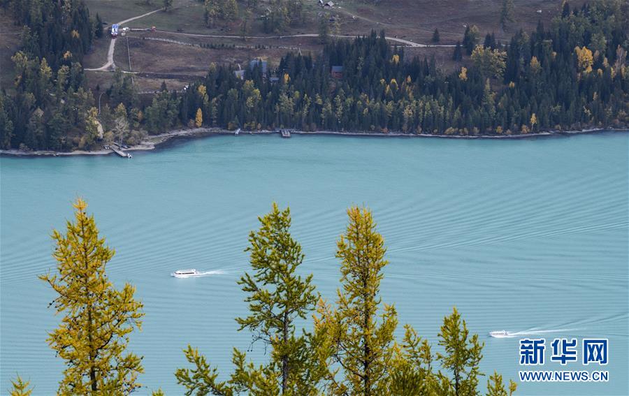 9月23日拍摄的喀纳斯景区风光。 金秋时节,位于新疆阿勒泰地区的喀纳斯景区内的林木与喀纳斯湖相互映衬,美不胜收。 新华社记者 王菲 摄