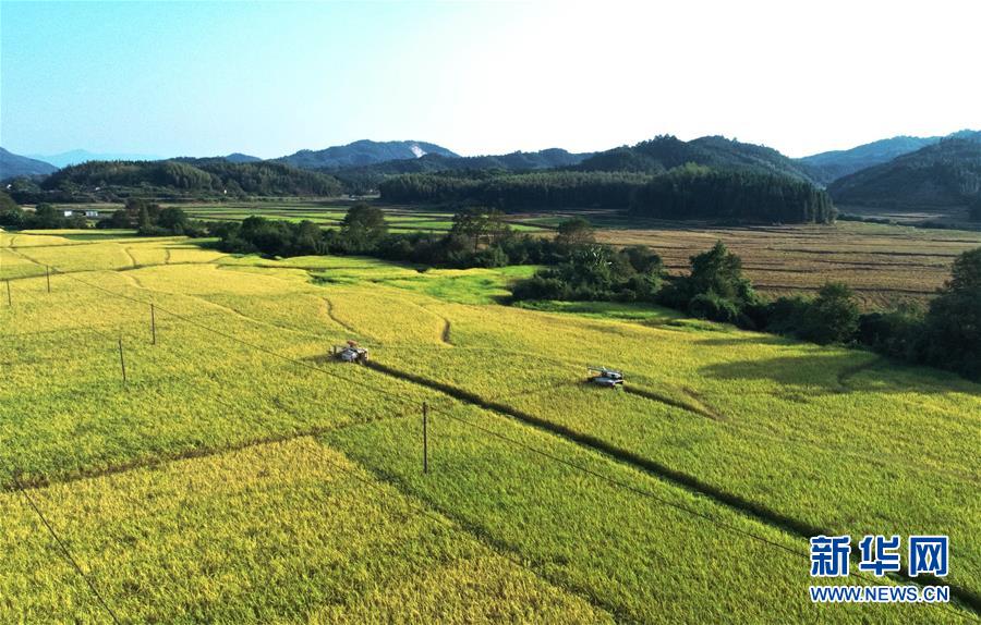 江西黎川:金色稻田秋收忙