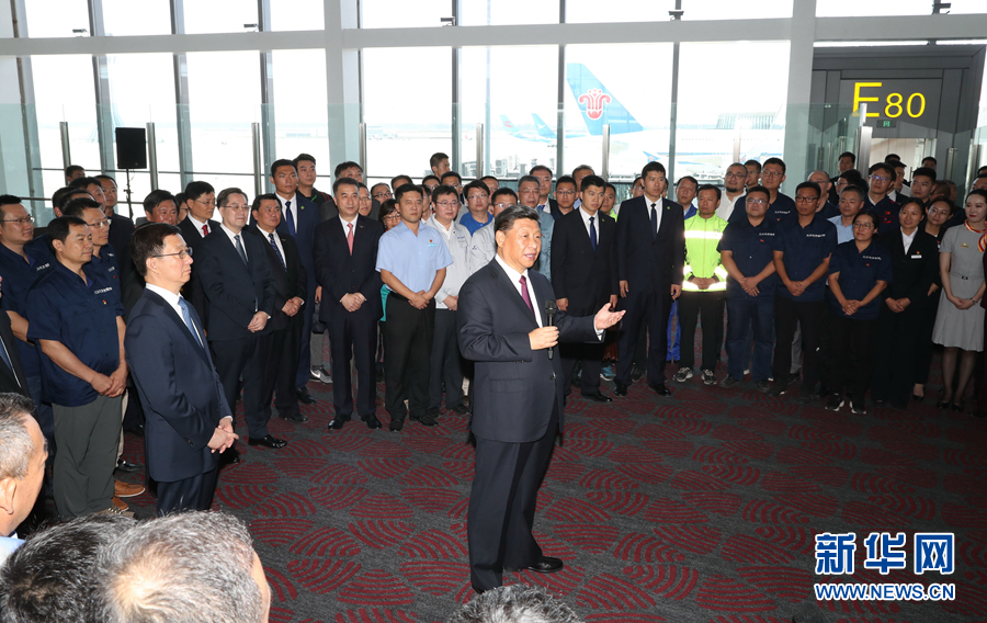 9月25日上午,北京大兴国际机场投运仪式在北京举行。中共中央总书记、国家主席、中央军委主席习近平出席仪式,宣布机场正式投运并巡览航站楼。这是习近平看望参与机场建设和运营的工作人员代表,同他们亲切交谈。 新华社记者 王晔 摄