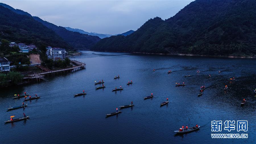 9月25日,在宋村乡云源港的水面上,渔民划着渔船,船头点亮渔灯,构成一幅“渔舟唱晚、万家灯火”的美丽图景,与沿湖民宿群落交相辉映(无人机拍摄)。 近年来,浙江省杭州市淳安县宋村乡积极发展乡村旅游,打造渔家元素特色景观,助力乡村振兴建设。目前,宋村乡依托山水景观和渔家文化,带动了当地精品民宿和集沙滩嬉水、自助烧烤、农事体验、民俗摄影采风为一体的特色旅游发展。2019年1月初至7月底,全乡接待游客10万人次,实现旅游经济收入1300万元。 新华社记者 徐昱 摄