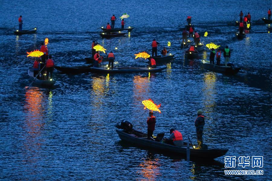9月25日,在宋村乡云源港的水面上,渔民划着渔船,船头点亮渔灯,构成一幅“渔舟唱晚、万家灯火”的美丽图景。 近年来,浙江省杭州市淳安县宋村乡积极发展乡村旅游,打造渔家元素特色景观,助力乡村振兴建设。目前,宋村乡依托山水景观和渔家文化,带动了当地精品民宿和集沙滩嬉水、自助烧烤、农事体验、民俗摄影采风为一体的特色旅游发展。2019年1月初至7月底,全乡接待游客10万人次,实现旅游经济收入1300万元。 新华社记者 徐昱 摄