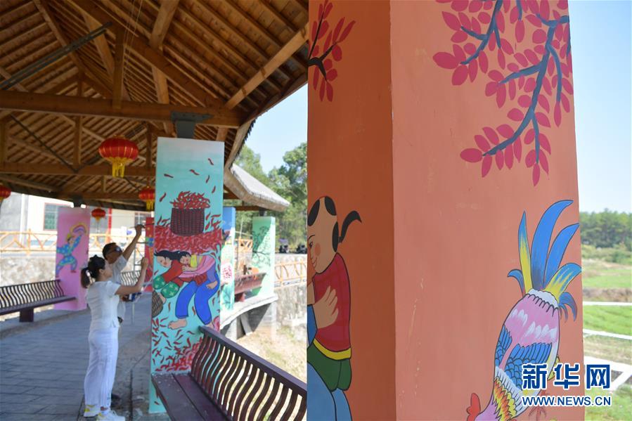 画师在江西省万安县田北村休闲长廊绘制墙画(9月24日摄)。 近年来,江西省万安县传承发展民间艺术,深入挖掘农民画文化精髓,传承地方文化记忆,留下美丽乡愁,通过“文旅融合”,把农民画作为农民致富、推进“旅游兴县”的特色产业进行重点打造。在万安县田北村,家家户户的墙体上都绘制了大大小小的农民画墙绘,这些乡土气息浓厚的绘画作品吸引了许多来自城市的游客驻足欣赏,已经成为当地发展乡村旅游的一张“名片”。 新华社记者 彭昭之 摄