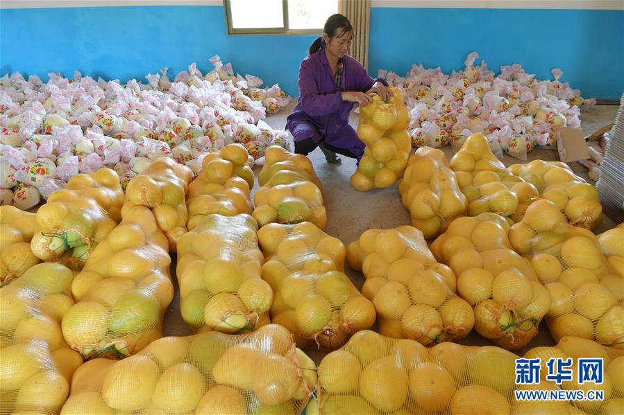江西省万安县果农将采摘的井冈蜜柚打包准备外销(9月24日摄)。 新华社记者 彭昭之 摄