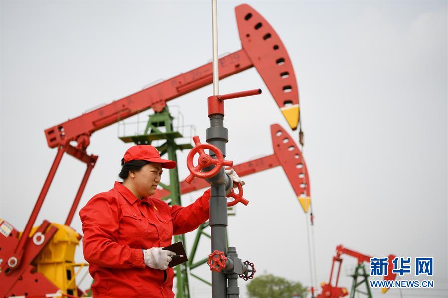 大庆油田采油一厂三矿中四队职工在巡井中做记录(6月26日摄)。新华社记者 王建威 摄