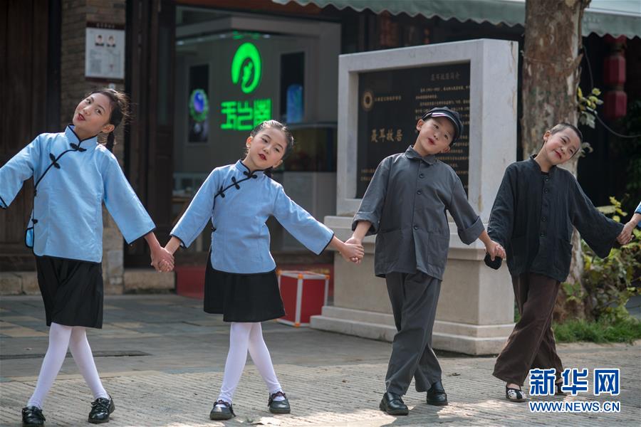 9月27日,云南昆明长春小学学生在聂耳故居表演校园剧《我的同学是聂耳》。 当日,昆明市五华区在聂耳故居开展“同升国旗 同唱国歌”活动。 新华社记者 胡超 摄