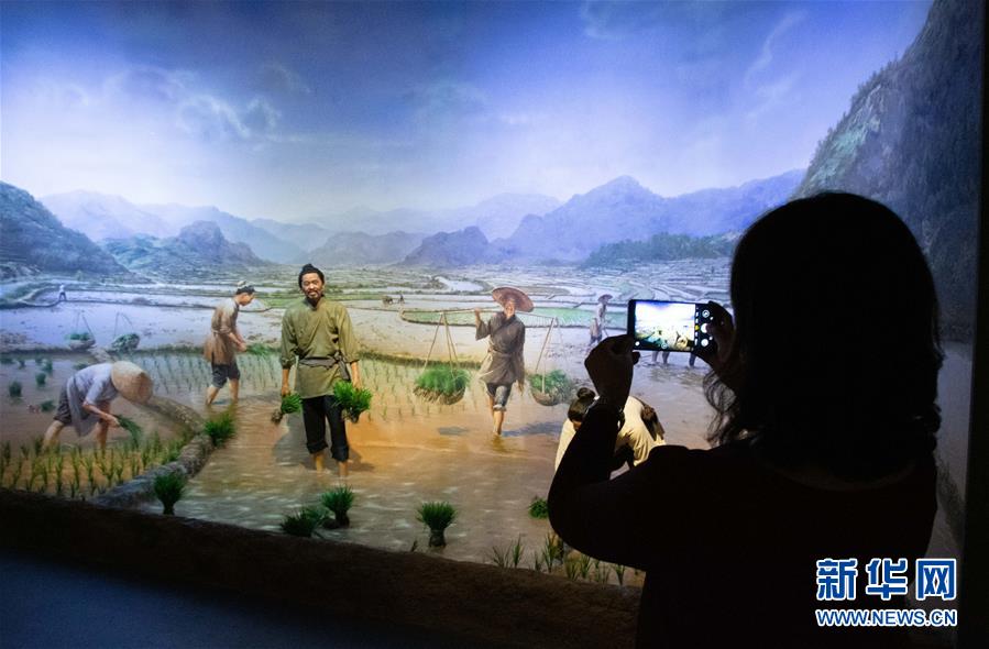 9月27日,观众在隆平水稻博物馆展厅里参观水田阡陌图。 当日,位于湖南省长沙市芙蓉区的隆平水稻博物馆举行开馆仪式。隆平水稻博物馆面向公众免费开放,观众除了在展厅感知、学习水稻文化知识外,还可以在博物馆的文化园区开展户外稻田体验活动。 新华社记者 柳王敏 摄