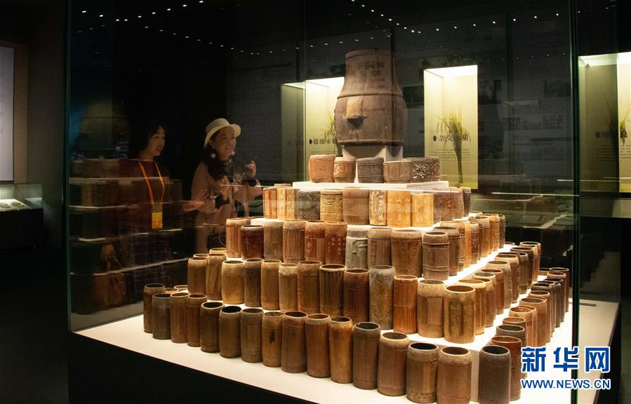 9月27日,观众在隆平水稻博物馆展厅里参观米升。 当日,位于湖南省长沙市芙蓉区的隆平水稻博物馆举行开馆仪式。隆平水稻博物馆面向公众免费开放,观众除了在展厅感知、学习水稻文化知识外,还可以在博物馆的文化园区开展户外稻田体验活动。 新华社记者 柳王敏 摄