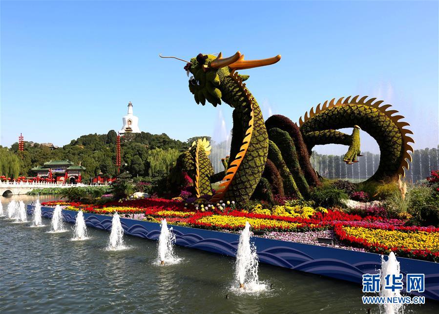 北京北海公园的国庆主题花坛(9月25日摄)。 新华社发