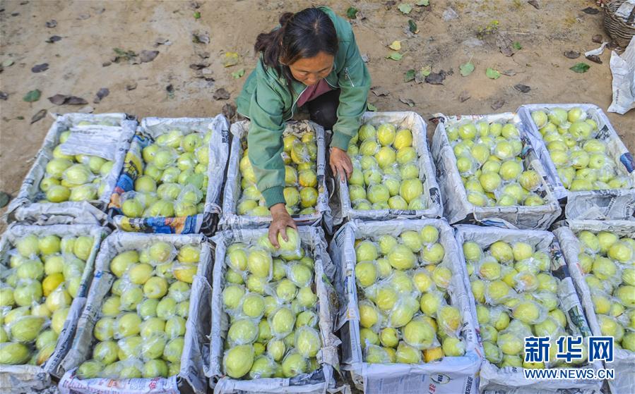 9月29日,在河北省永清县别古庄镇大范庄村梨园,果农把采摘的鸭梨装箱。 金秋时节,河北省永清县别古庄镇大范庄村千亩梨园迎来丰收季。据了解 ,别古庄镇大范庄村种植梨树有上百年历史,目前该村种植梨树面积达1600余亩,年产值1400余万元,成为当地农民增收的主要来源。 新华社记者 李晓果 摄