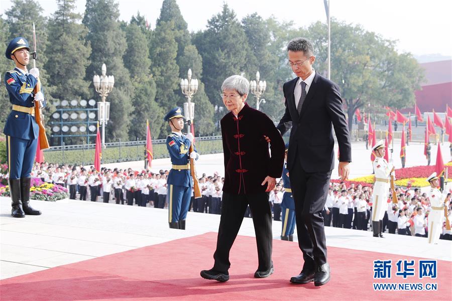 9月29日上午,获得“文物保护杰出贡献者”国家荣誉称号的樊锦诗抵达人民大会堂。 经中共中央批准,中华人民共和国国家勋章和国家荣誉称号颁授仪式于9月29日上午10时在北京人民大会堂隆重举行。 新华社记者 刘彬 摄