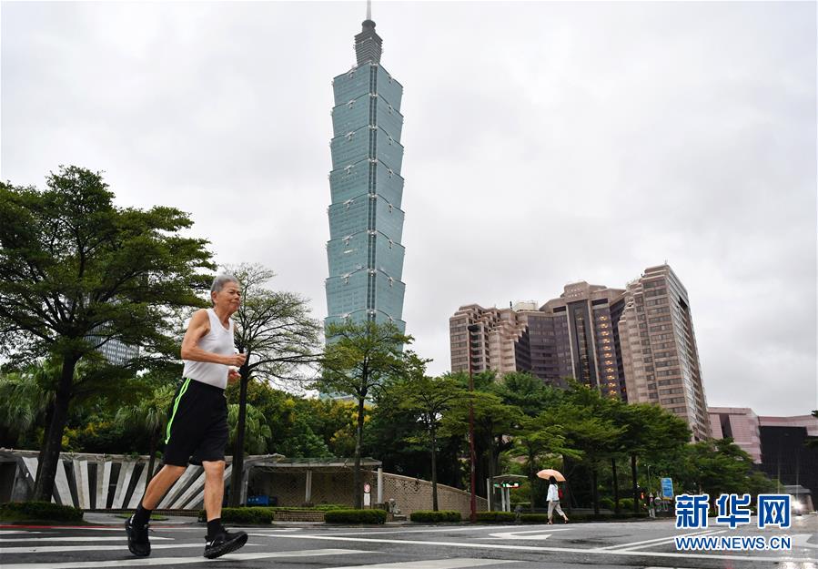 10月1日,市民在台北101大楼前晨跑。新华社记者 陈斌 摄