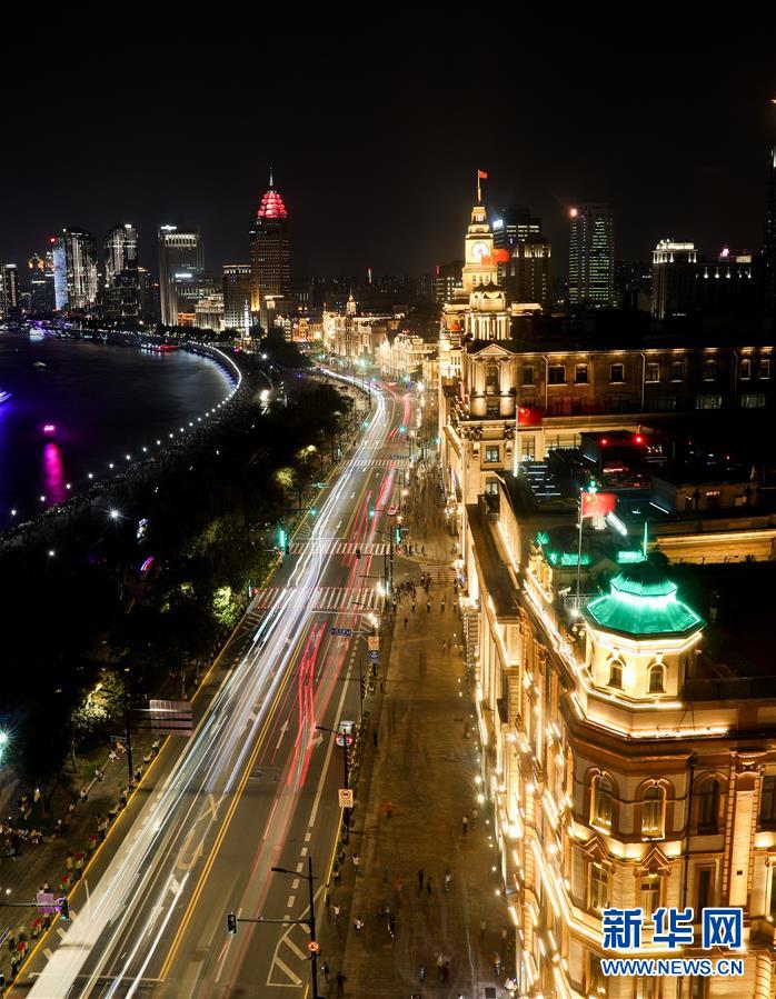 这是9月30日拍摄的上海外滩夜景。国庆临近,华灯初上时,上海浦江两岸灯光璀璨夺目、交相辉映,使申城夜色更加美丽动人。新华社记者 丁汀 摄