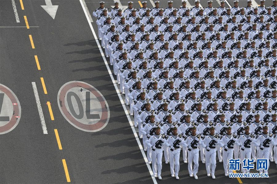 10月1日上午,庆祝中华人民共和国成立70周年大会在北京天安门广场隆重举行。这是海军方队。 新华社记者申宏摄