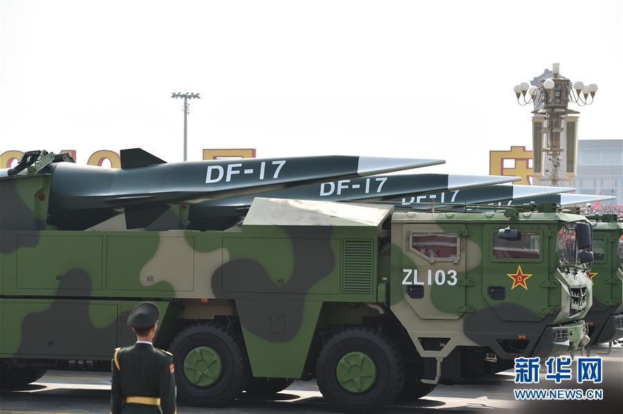 10月1日上午,庆祝中华人民共和国成立70周年大会在北京天安门广场隆重举行。这是东风-17常规导弹方队。 新华社记者 毛思倩 摄