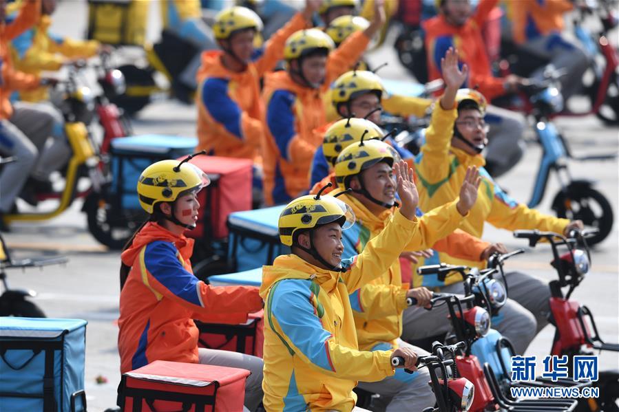 10月1日上午,庆祝中华人民共和国成立70周年大会在北京天安门广场隆重举行。这是群众游行中的“美好生活”方阵。 新华社记者 刘大伟 摄