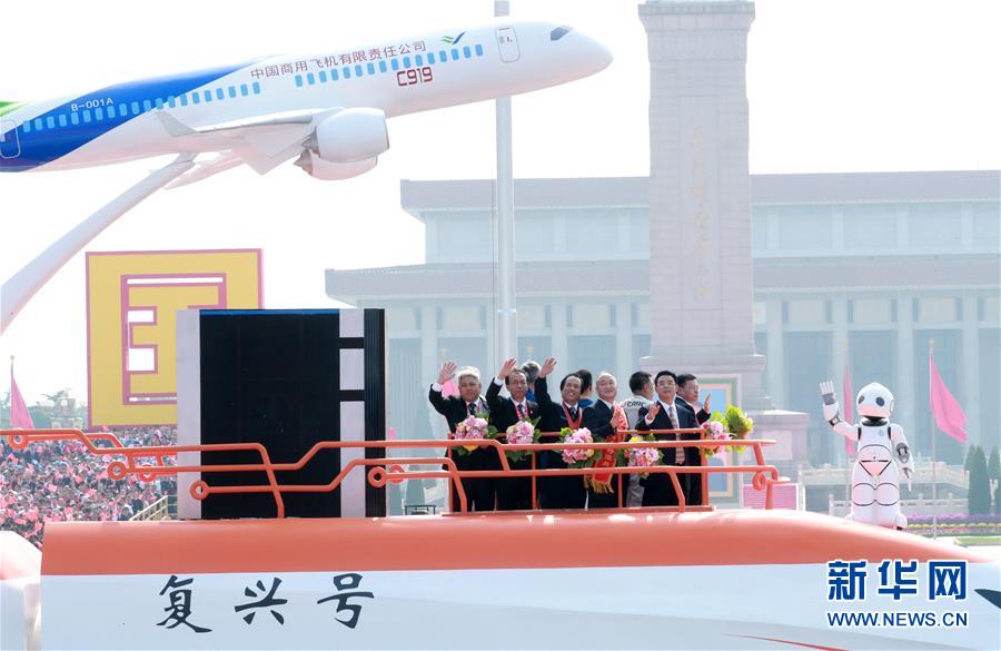 10月1日上午,庆祝中华人民共和国成立70周年大会在北京天安门广场隆重举行。这是群众游行中的“创新驱动”方阵。 新华社记者 袁满 摄