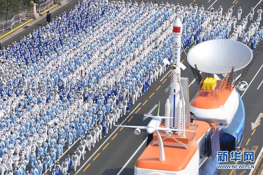 10月1日上午,庆祝中华人民共和国成立70周年大会在北京天安门广场隆重举行。这是群众游行。 新华社记者 李安 摄