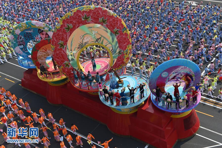 10月1日上午,庆祝中华人民共和国成立70周年大会在北京天安门广场隆重举行。这是“中华文化”方阵。 新华社记者徐昱摄