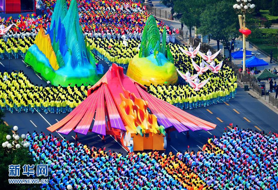 10月1日上午,庆祝中华人民共和国成立70周年大会在北京天安门广场隆重举行。这是群众游行中的绿水青山方阵和中华儿女方阵。 新华社记者魏培全摄