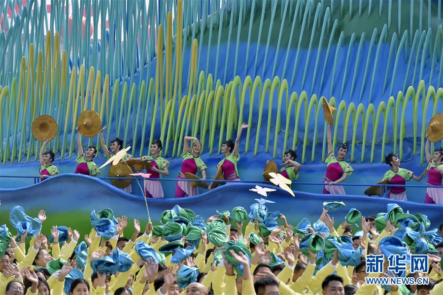 10月1日上午,庆祝中华人民共和国成立70周年大会在北京天安门广场隆重举行。这是“绿水青山”方阵。 新华社记者 周华 摄